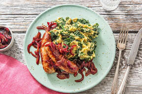 Herby Chicken with Red Onion Mash and Garlicky Beans- Himbeerbrötchen