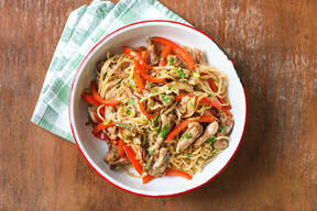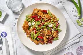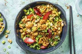 Yasai Yaki Udon with Pickled Radish and Chestnut Mushrooms