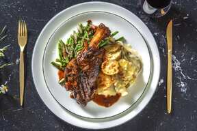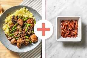 Chicken, Bacon, Red Wine Jus and Mushroom Stew