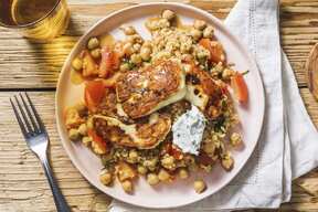 Chermoula Spiced Halloumi with Bulgur Wheat & Chickpea Tabboulleh
