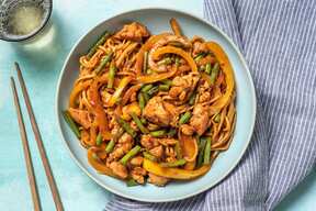 Teriyaki Udon Noodles with Pickled Radish and Mushrooms