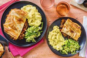 Beef and Potatoe Keema Naans with Naan and Baby Gem Salad