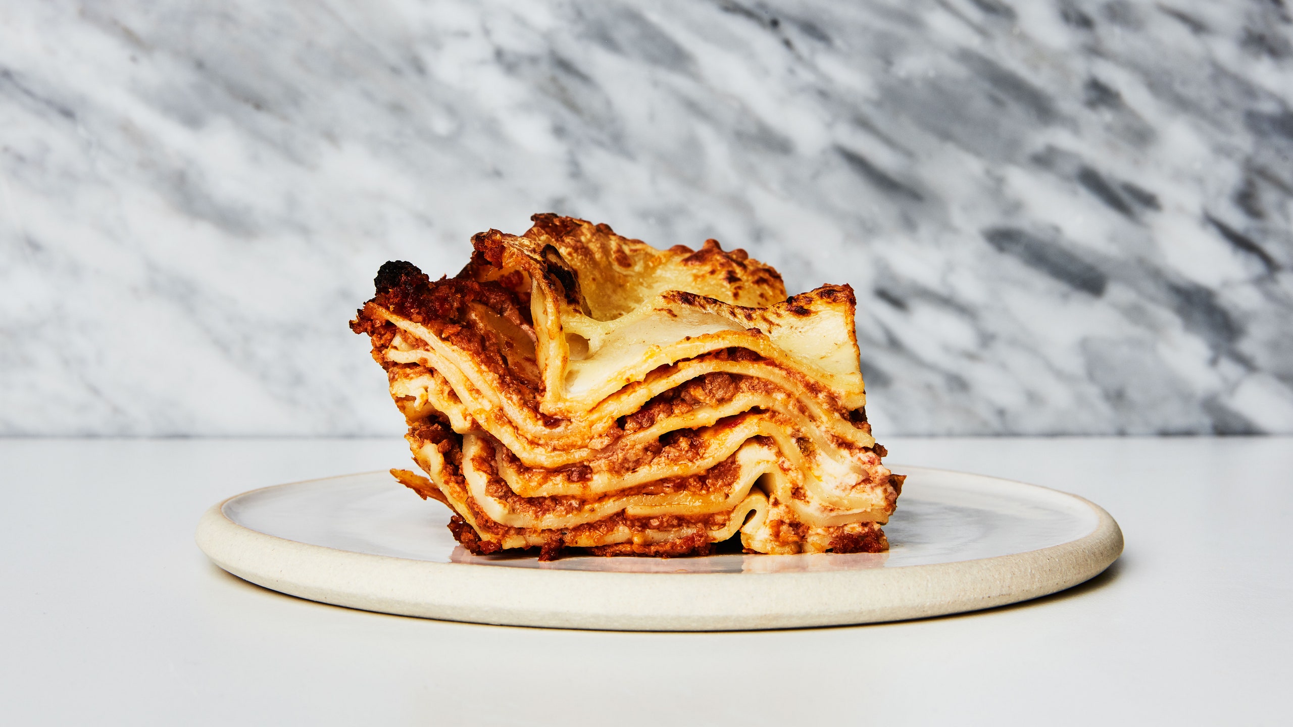 Lightly oil a 13x9" glass or ceramic baking dish. Spread 1½ cups ragù in dish. Lay a single layer of noodles over ragù (you will need to cut some noodles in half in order to fill all gaps). Spoon 1¼ cups béchamel over noodles, spreading in an even layer with a small offset spatula. Top béchamel with 1½ cups ragù. Repeat, creating 5 layers of pasta (or 6, depending on how deep your pan is) and ending with remaining 1 cup béchamel. It should come right to the top edge of the dish, and the top layer of pasta will get super crunchy when baked.