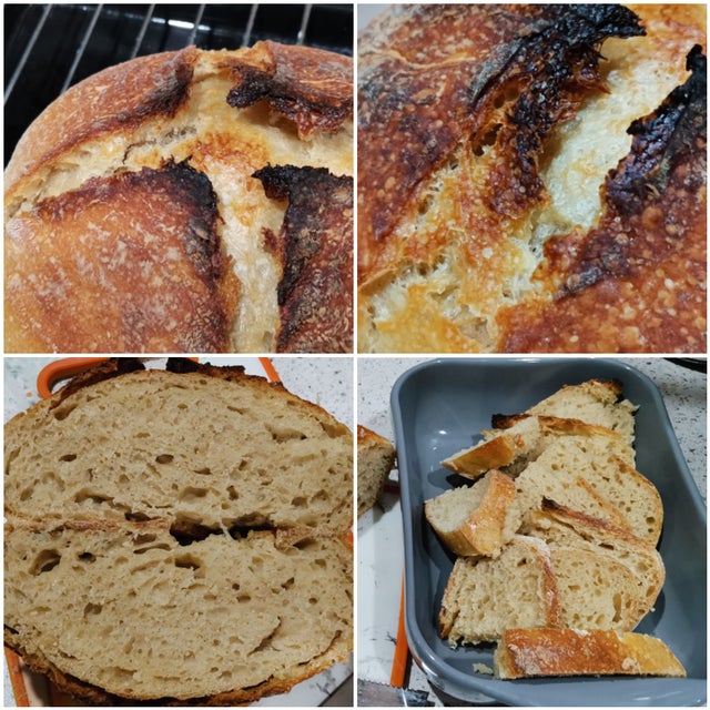 Transfer dough to a Dutch Oven, score and bake covered for 20 - 25 minutes. At 500F
